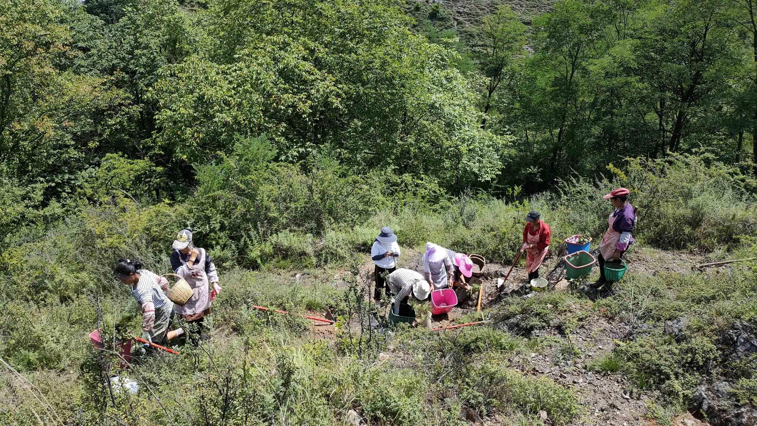 Afin de permettre le développement des plantes médicinales dans la communauté locale, l’équipe du projet a contribué à l’achat de plusieurs plants auprès de la coopérative de Liming, notamment le Paris polyphylla var. yunnanensis, Gentiana macrophylla et le Aucklandia costus.